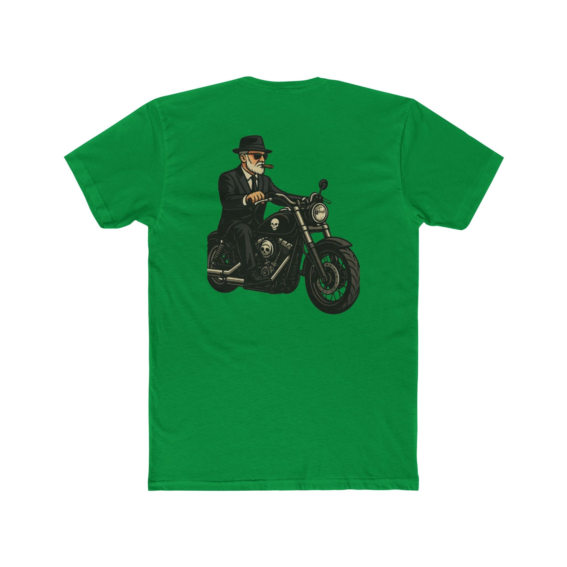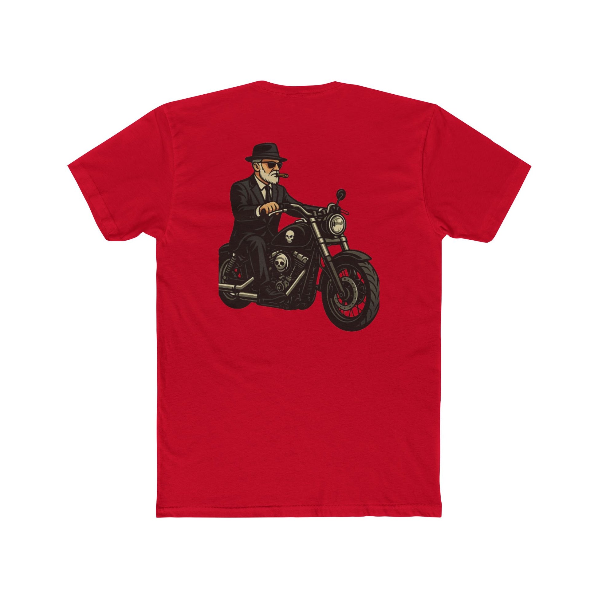 Crafted from ultra-soft, 100% combed ring-spun cotton, this shirt feels like a second skin but looks sharp enough to turn heads. Whether you’re rolling down the highway or kicking back with a cold one, this tee’s got your back—literally.